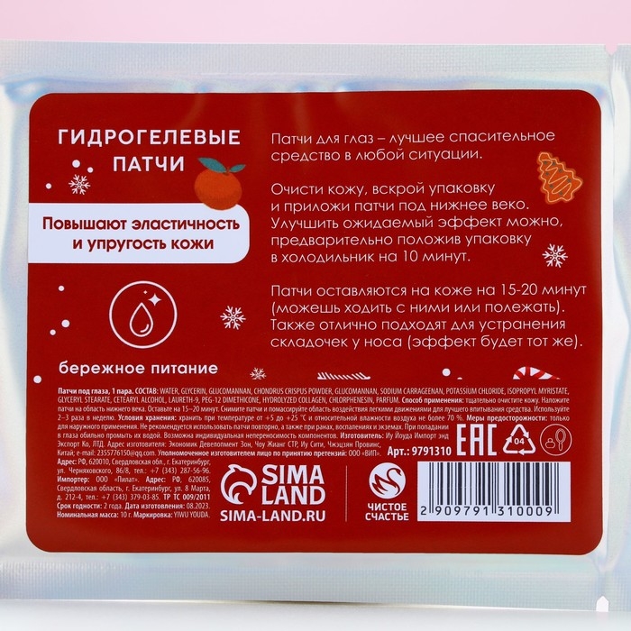 Патчи для области вокруг глаз «Привет, зима!», 1 пара, Новый Год