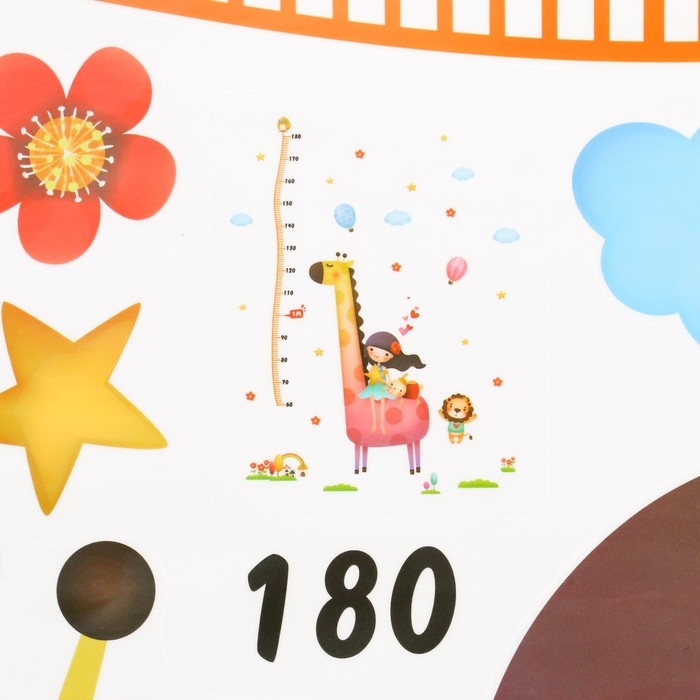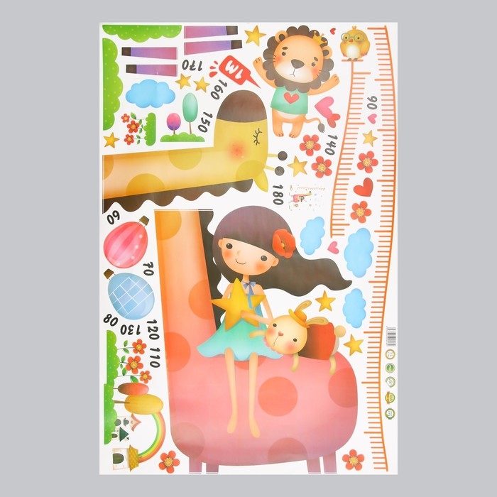 Наклейка пластик интерьерная цветная ростомер "Девочка и жираф" 60x90