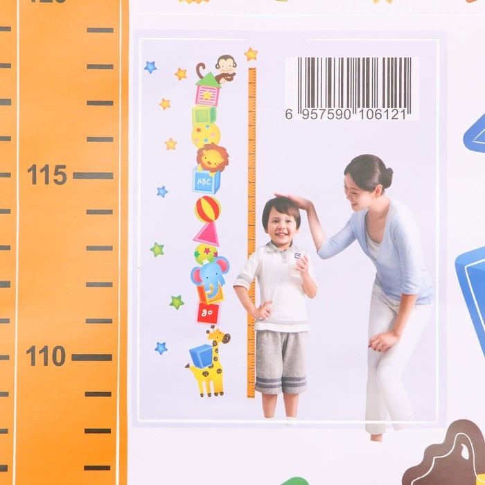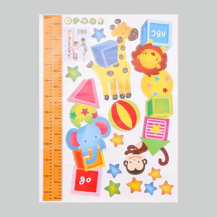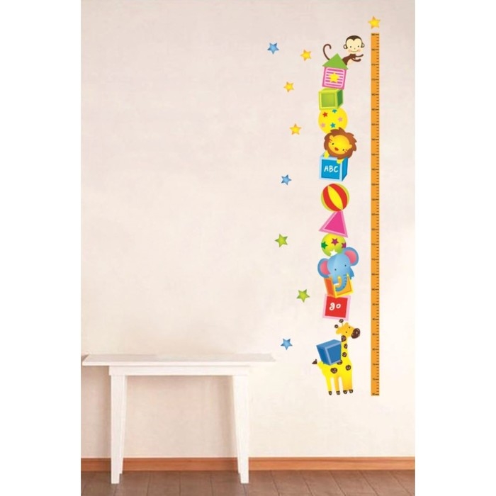 Наклейка пластик интерьерная цветная ростомер "Звери и кубики" 45x60
