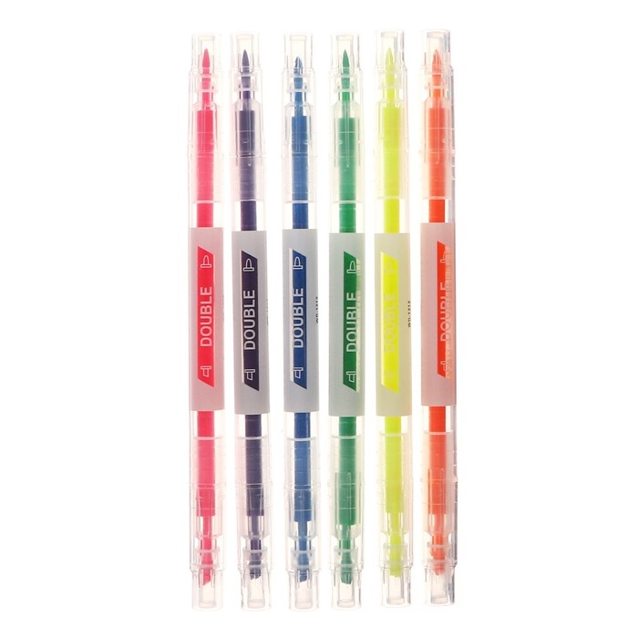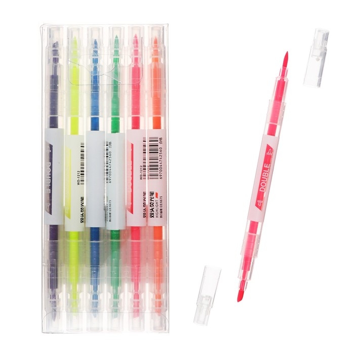 Набор маркеров текстовыделителей 6 штук, 6 цветов двусторонние, флуоресцентные цвета
