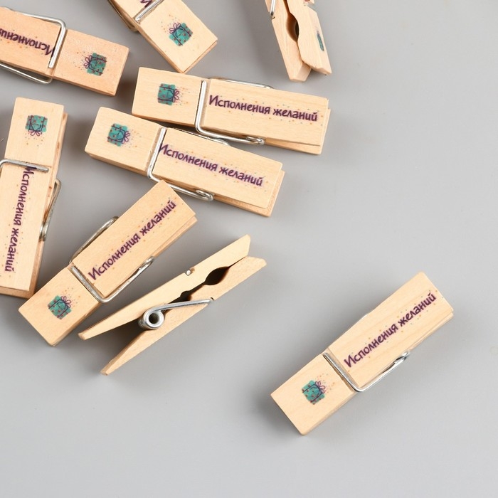 Декор для творчества дерево "Прищепка - Исполнения желаний" набор 10 шт