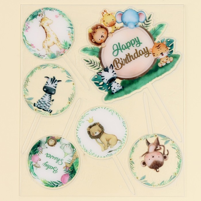 Набор топперов «С днём рождения», зверята