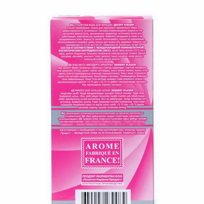 Туалетная вода "Dessert Plaisir" - это аромат, который сочетает в себе свежие и утонченные ноты, создавая неповторимый и женственный букет.