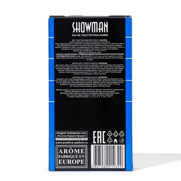 Завершающие ноты включают амбру, мускус и янтарь, создавая стойкую и чувственную базу. Showman - это аромат для уверенных в себе и стильных мужчин, которые предпочитают насыщенные и мужественные ароматы. Этот аромат подходит как для повседневного использования, так и для особых случаев, добавляя образу стойкости и уверенности.