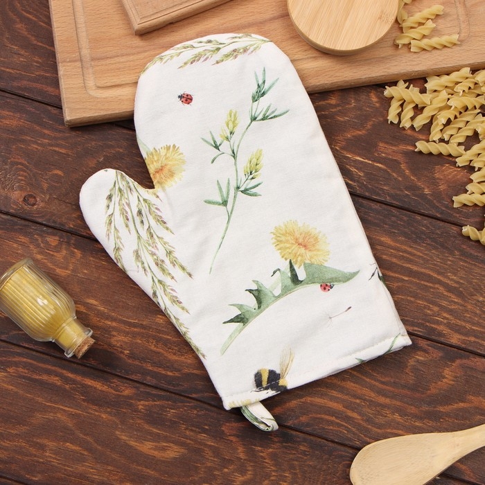 Варежка-прихватка Этель "Одуванчики" 20х27 см, 100% хл, саржа 178 г/м2