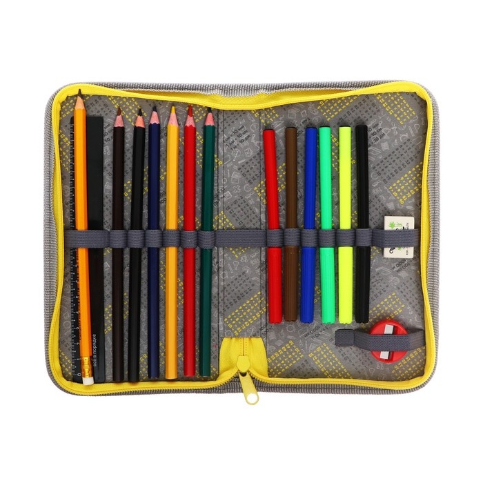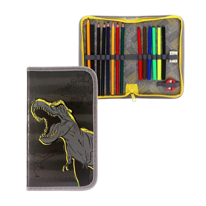 Пенал 1 секция, 115 х 205 мм, с наполнением 16 предметов, Calligrata "Динозавр" ламинированный картон, 30П26/set