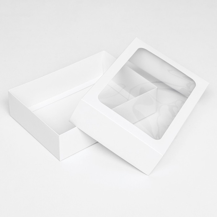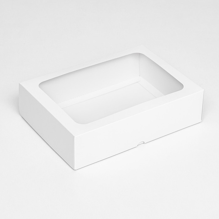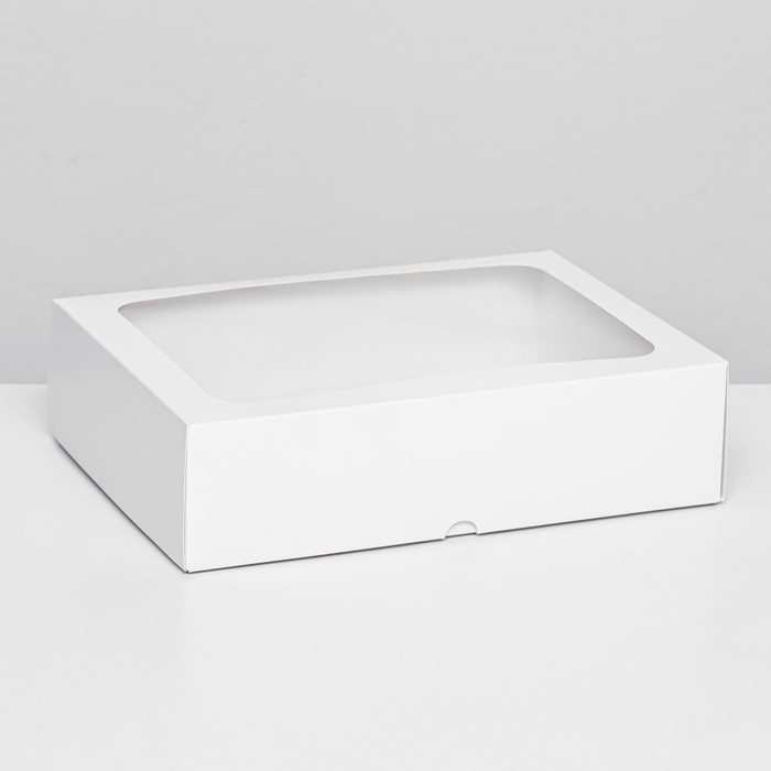 Коробка складная, крышка-дно, с окном, белый, 25 х 18 х 6,5 см,
