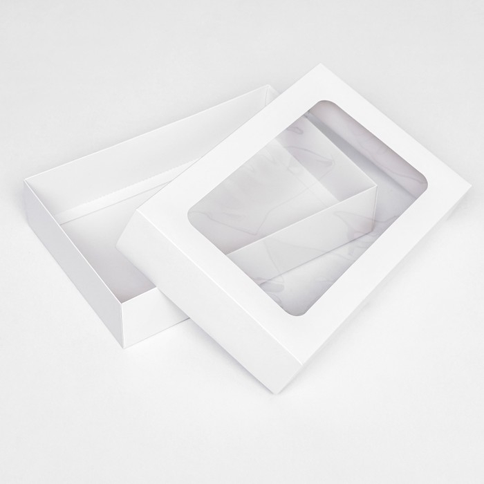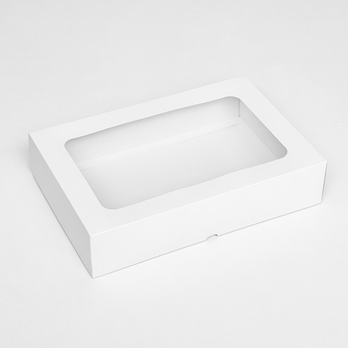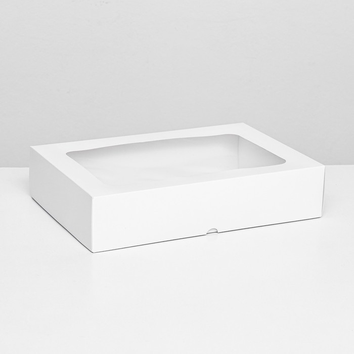Коробка складная, крышка-дно, с окном, белый, 30 х 20 х 6,5 см,