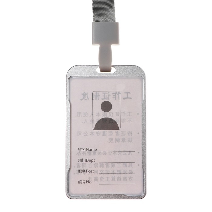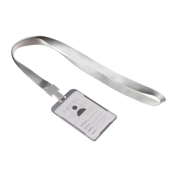 Бейдж-карман вертикальный (внешний 98 х 58мм), внутренний 85 х 54мм, металл, серебро, лента 40 см