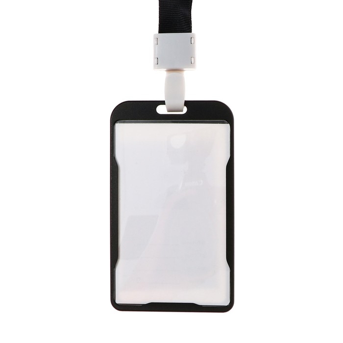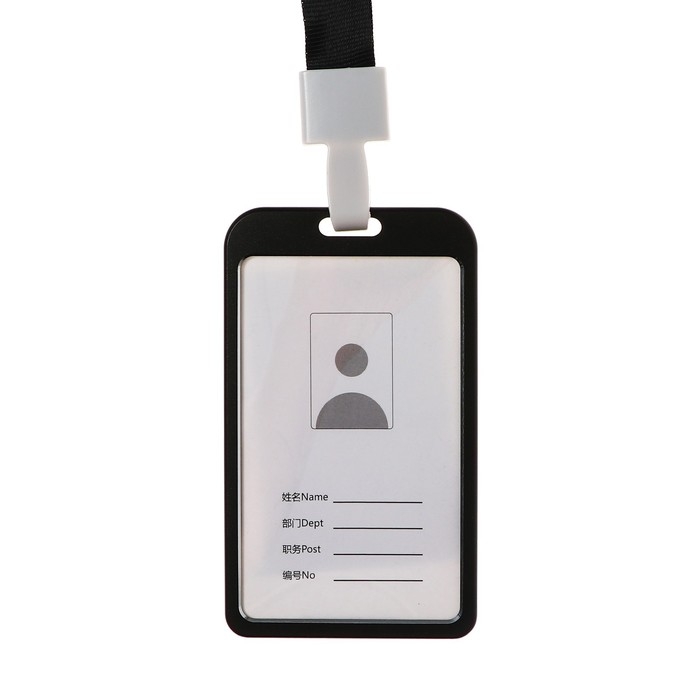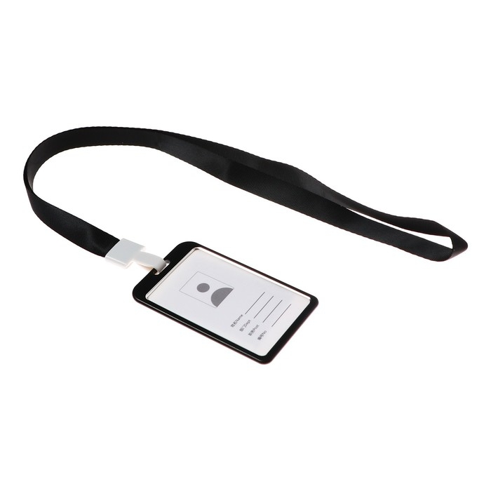 Бейдж-карман вертикальный (внешний 98 х 58мм),внутренний 85 х 54мм, металл, черный, лента 40 см