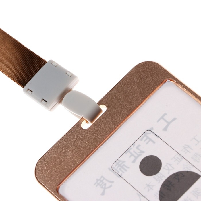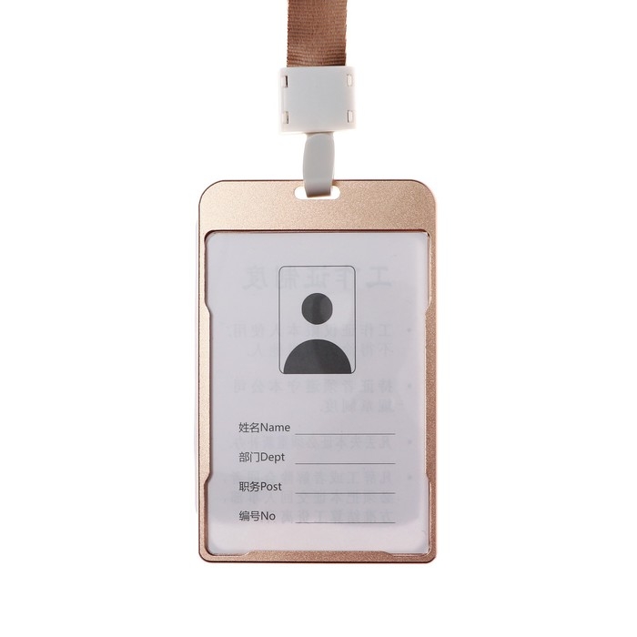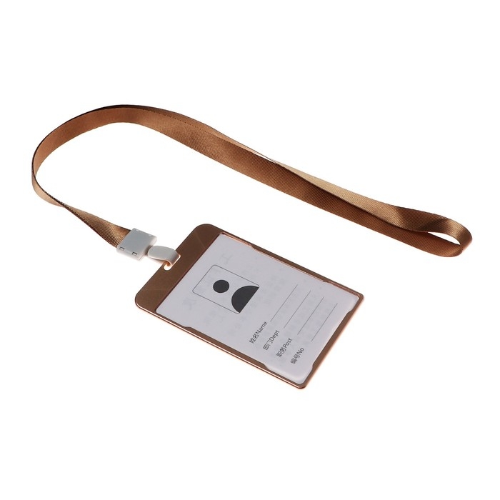Бейдж-карман вертикальный (внешний 120 х 75мм), внутренний 100 х 69мм, металл, золото, лента 40 см