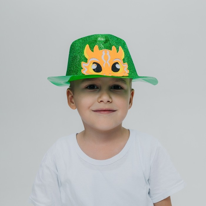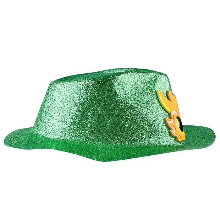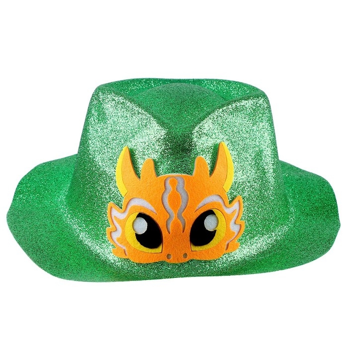 Эта карнавальная шляпа поможет создать яркий и запоминающийся образ на празднике. Шляпа выполнена из блестящего материала и украшена изображением желтого дракона, что придаёт ей особую привлекательность.