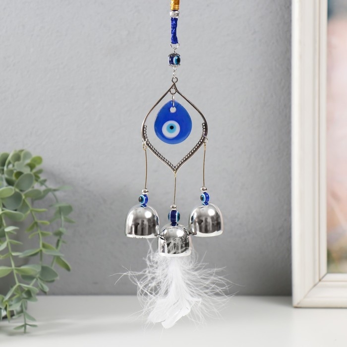 Музыка ветра металл, пластик "От сглаза с пером" 3 колокольчика 38х5,5х2,8 см
