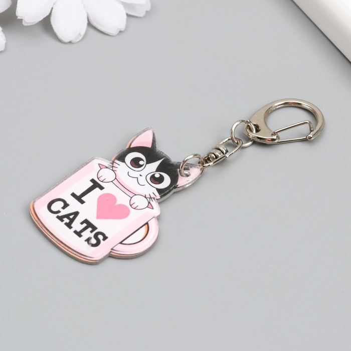 Брелок акрил "Котик в кружке" 4,5х3,2 см