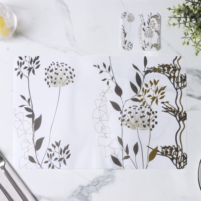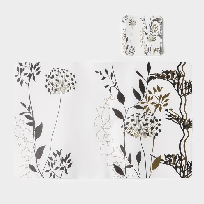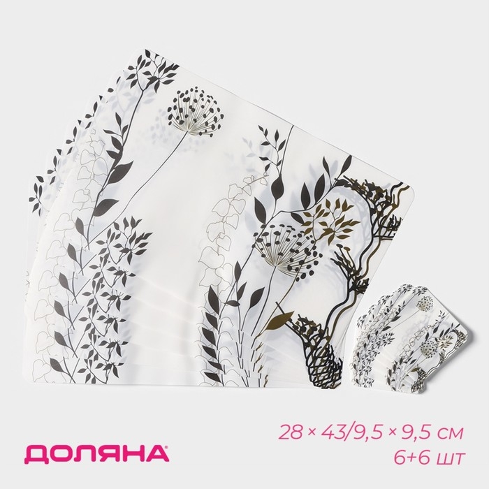 Салфетки сервировочные на стол Доляна «Укроп», 6+6 шт (28×43, 9,5×9,5 см), цвет белый