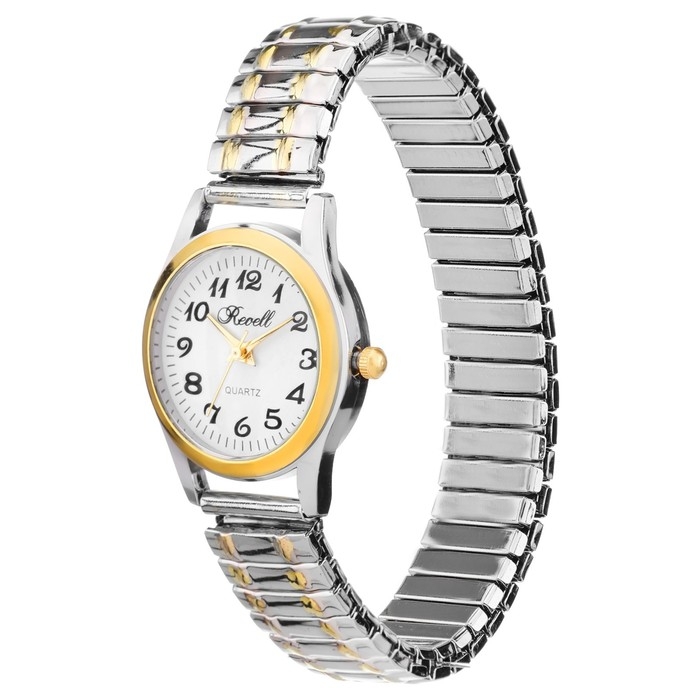 Часы наручные женские, d-2.8 см, ремешок металл, серебро с золотом