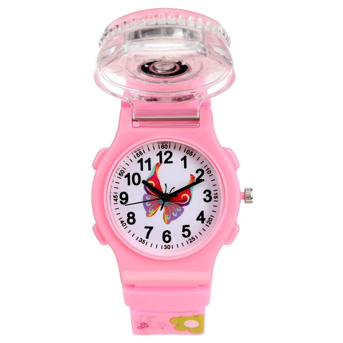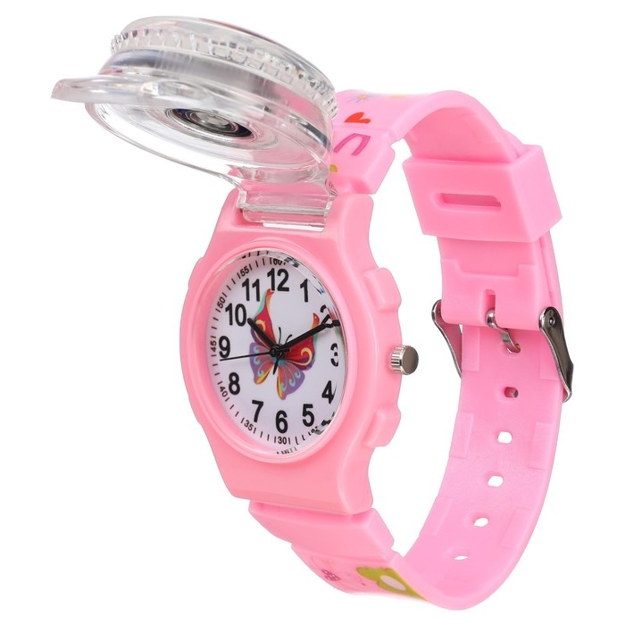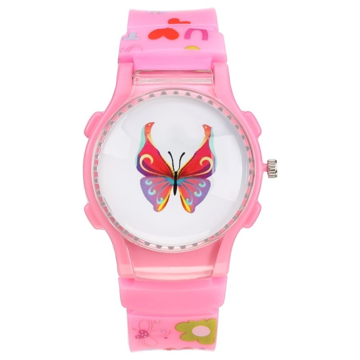 Часы наручные детские, "Бабочки", d-3,5 см, ремешок силикон l-21,5 см
