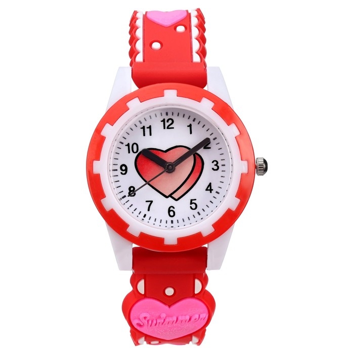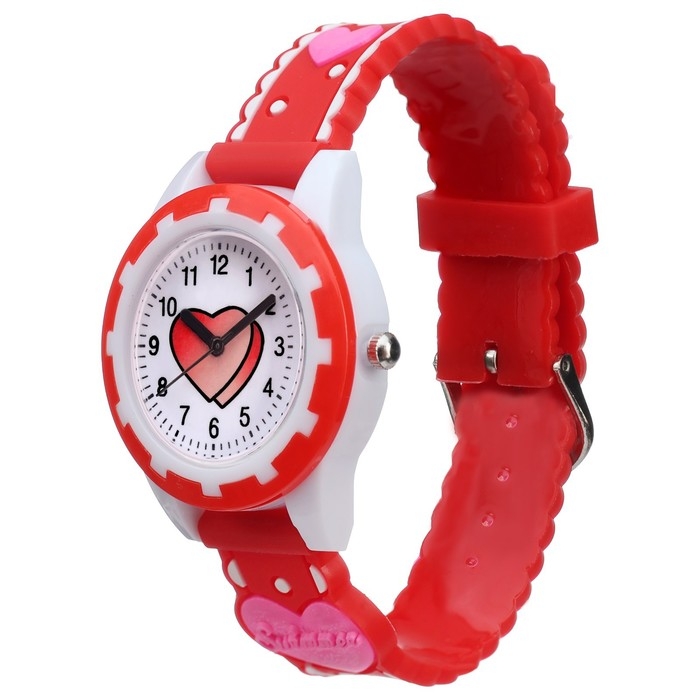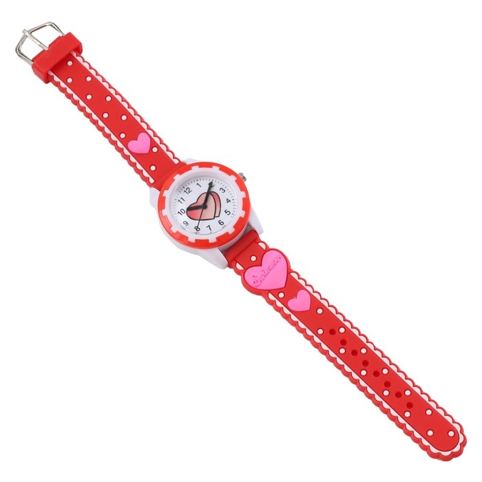 Часы наручные детские, "Сердечки", d-3 см, ремешок силикон l-20 см, красные