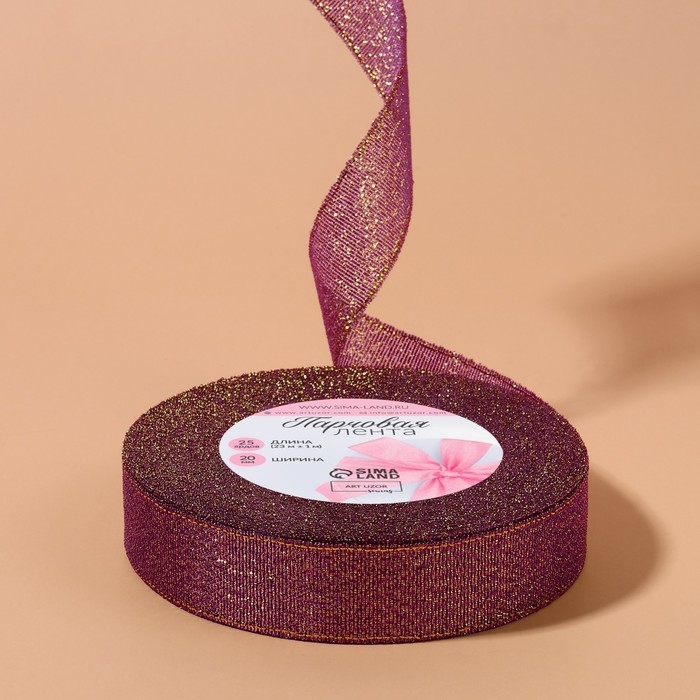 Лента парчовая, 20 мм, 23 ± 1 м, цвет сиреневый №012