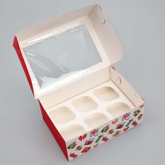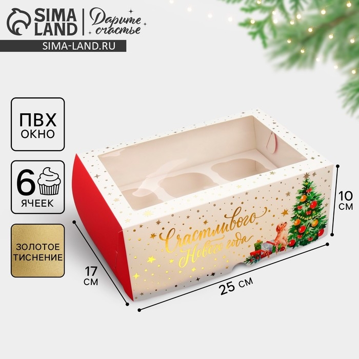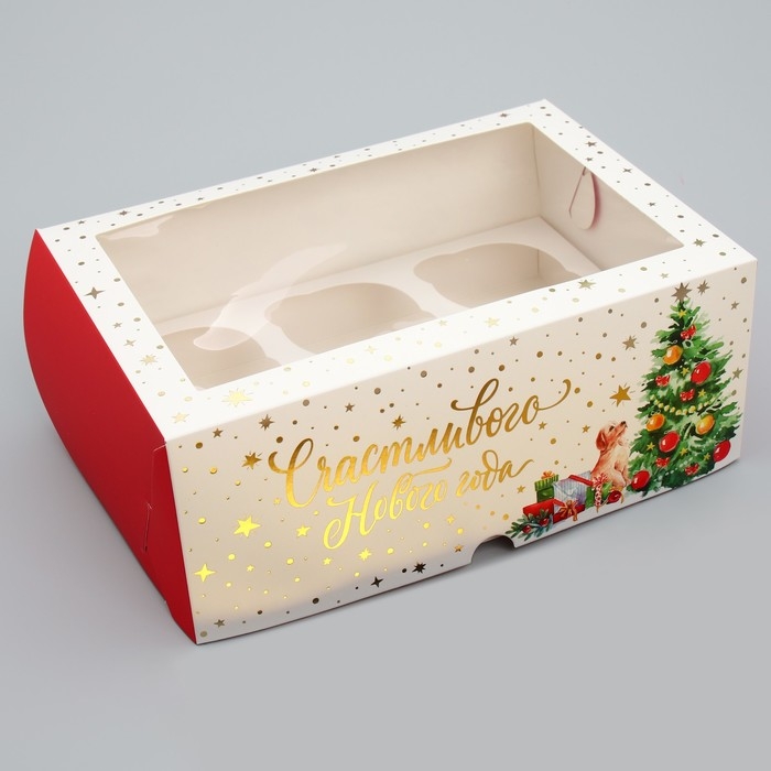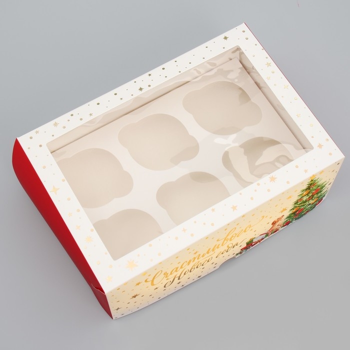 Коробка складная на 6 капкейков с окном «Счастливого Нового года», 25 х 17 х 10 см, Новый год