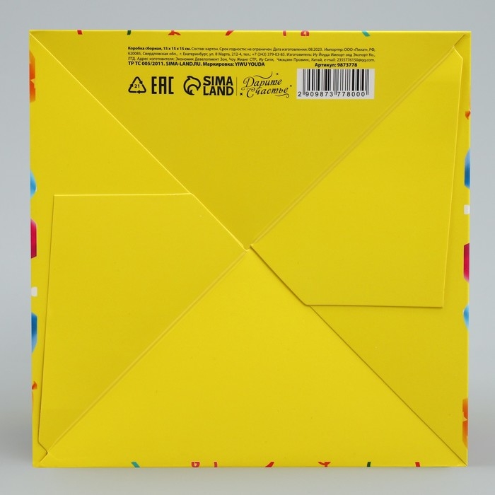 Коробка подарочная складная, упаковка, «С днем рождения», 15 х 15 х 15 см