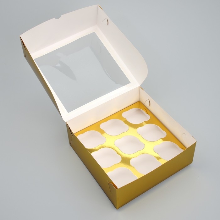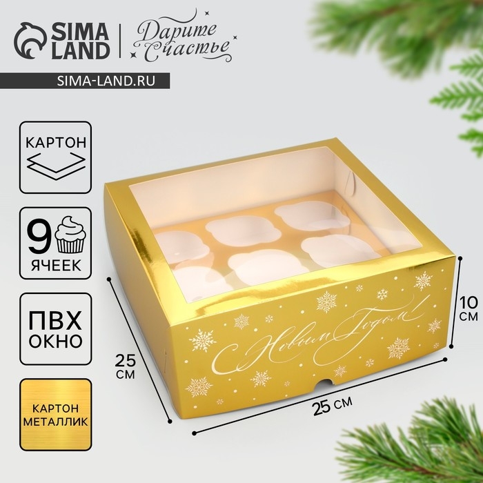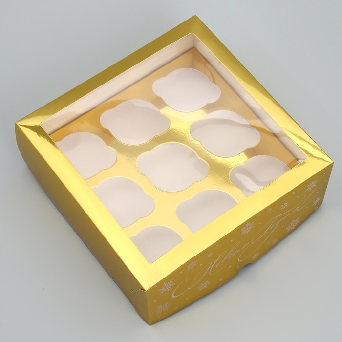 Коробка складная на 9 капкейков с окном «С Новым Годом», 25 х 25 х 10 см, Новый год