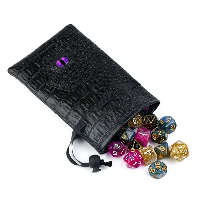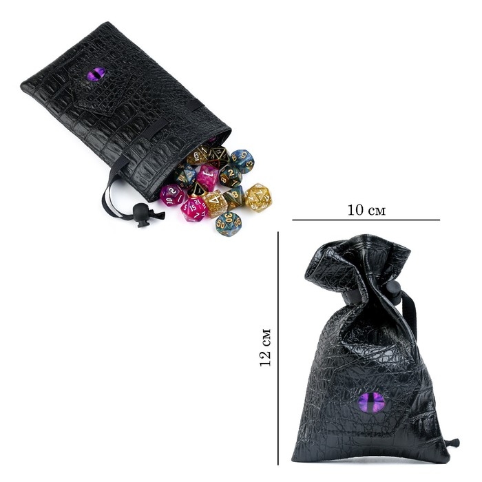 Мешочек для игральных костей или дайсов изготовлен из качественной и прочной экокожи, что обеспечивает его долговечность и стильный внешний вид. Шнурок позволяет легко открыть и закрыть мешочек, а также предотвращает потерю кубиков. Идеальный выбор для любителей настольных ролевых игр и коллекционеров аксессуаров, этот мешочек станет незаменимым помощником для хранения и безопасной транспортировки ваших дайсов.