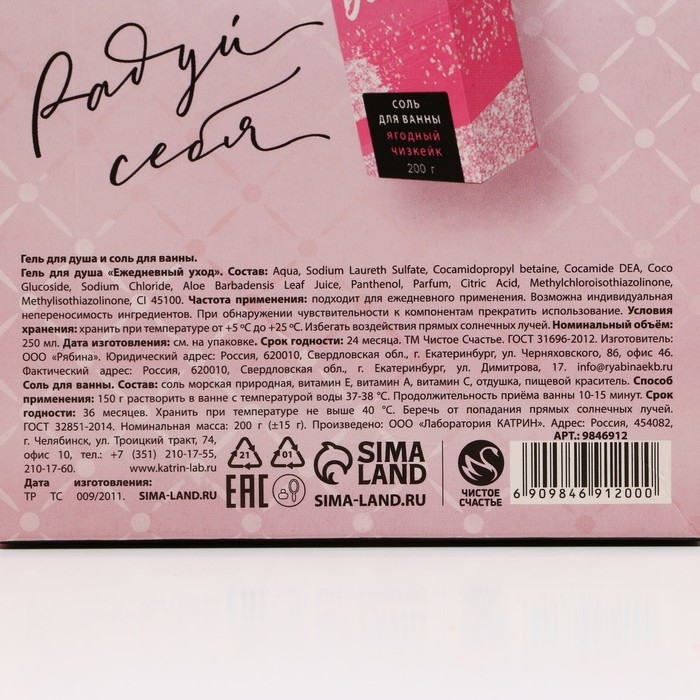 Подарочный набор косметики «Ты прекрасна!», гель для душа во флаконе мартини 250 мл и соль для ванны 200 г, Новый Год