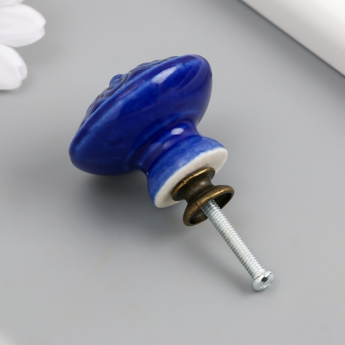 Ручка для шкатулки керамика, металл "Цветок" тёмно-синяя 3,9х3,9х3,1 см