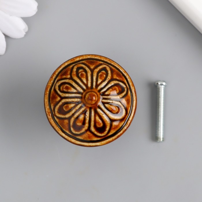 Ручка для шкатулки керамика, металл "Цветок" кофе 3,9х3,9х3,1 см