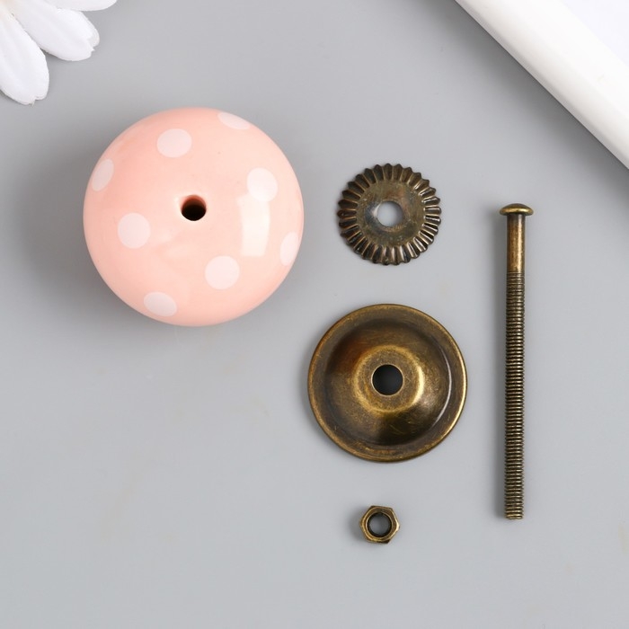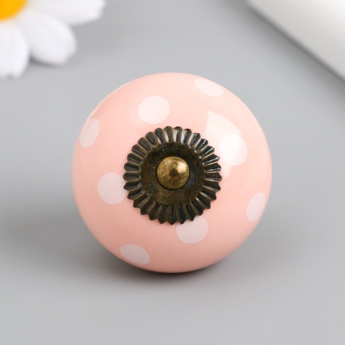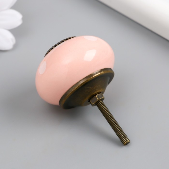 Ручка для шкатулки керамика, металл "Горошек на розовом" 4,1х4,1х6 см