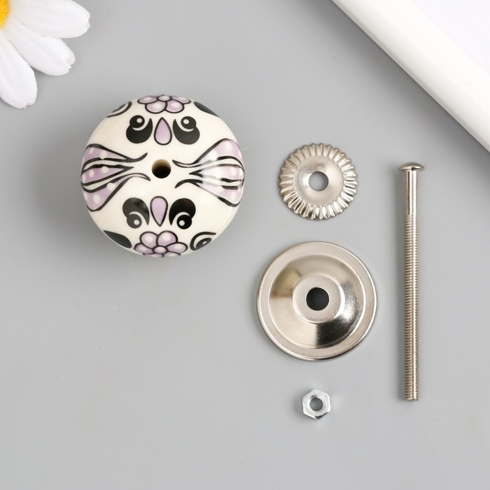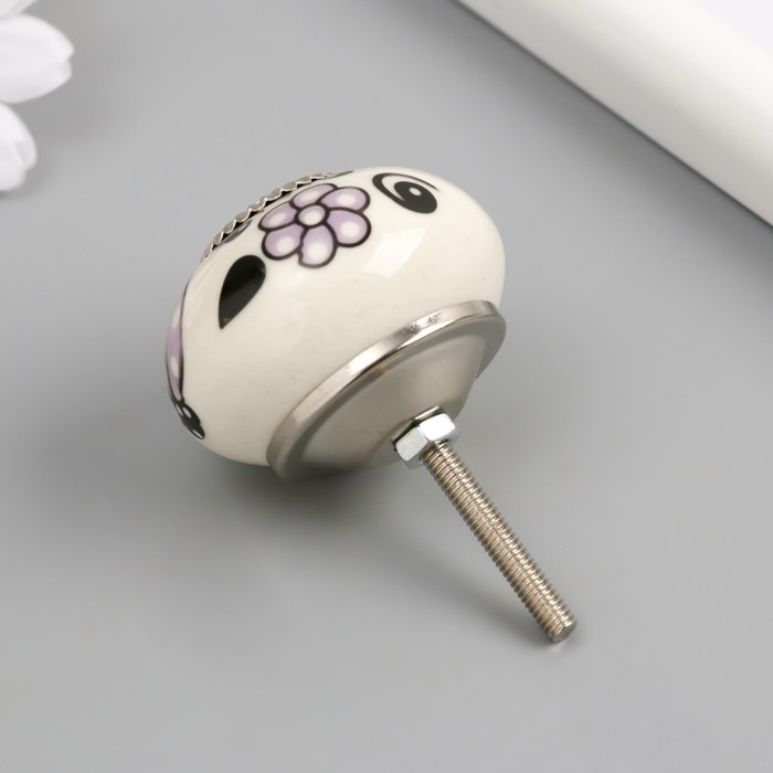 Ручка для шкатулки керамика, металл "Сиреневые цветы" 4,1х4,1х6 см