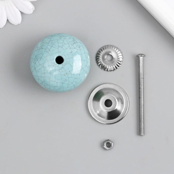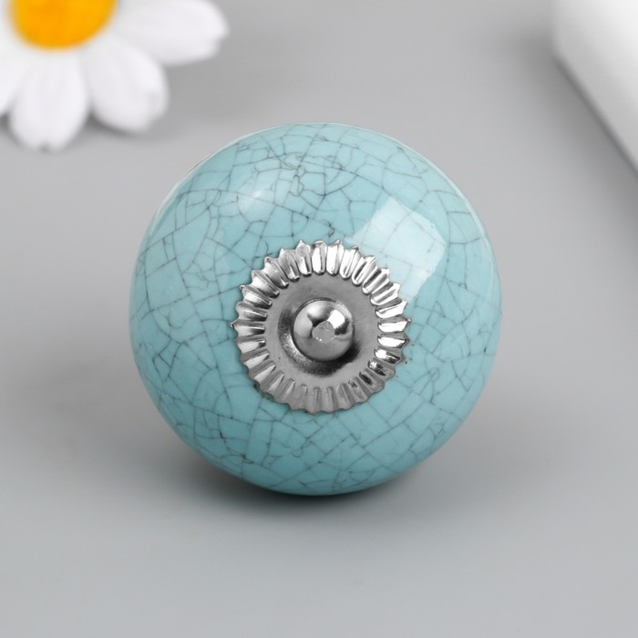 Ручка для шкатулки керамика, металл "Кракелюр на голубом" 4,3х4,3х6 см