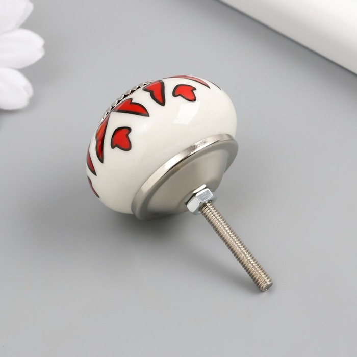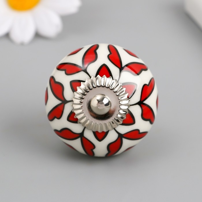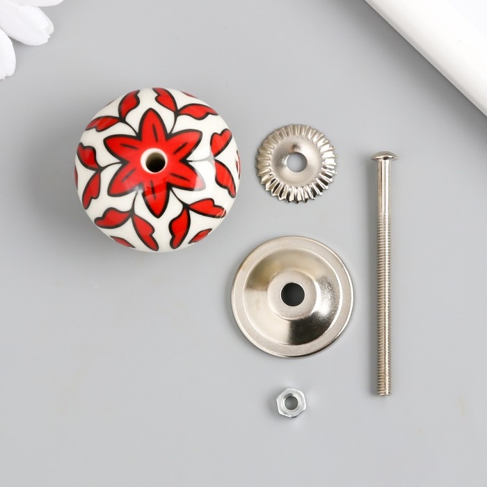 Ручка для шкатулки керамика, металл "Красный растительный узор" 4,1х4,1х6 см
