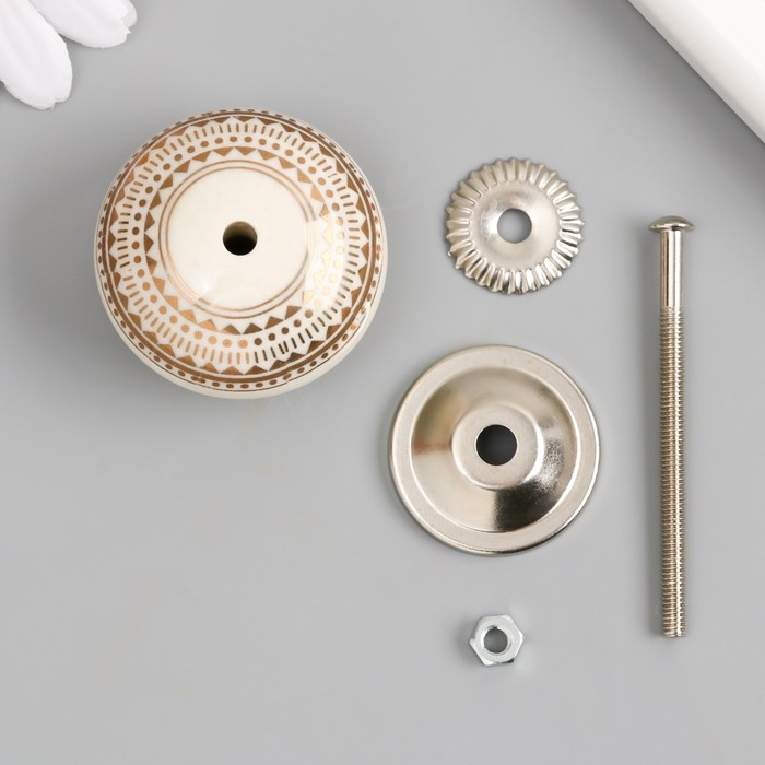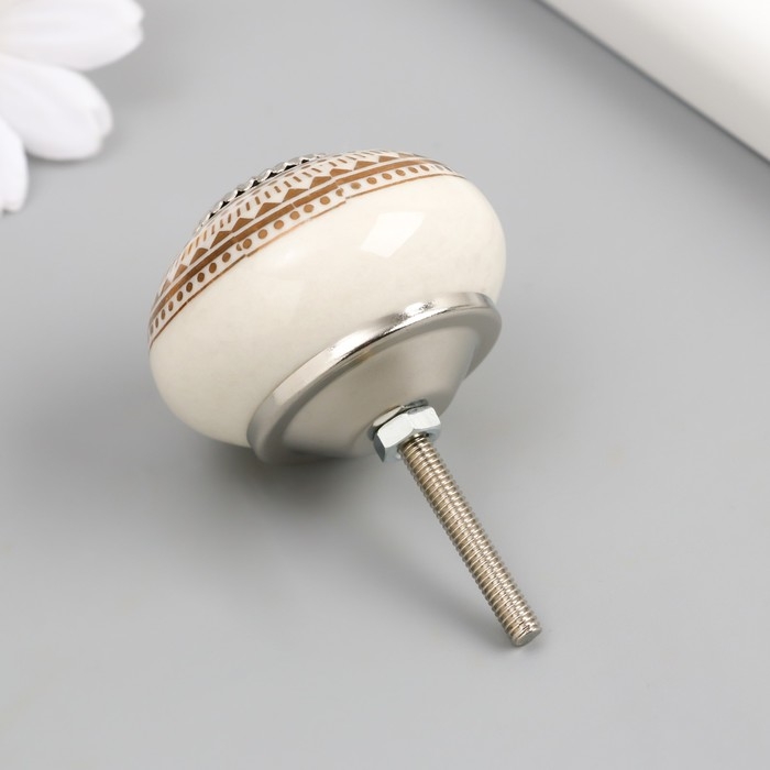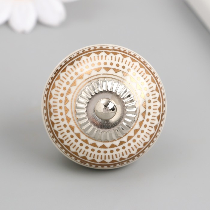 Ручка для шкатулки керамика, металл "Геометрический узор" бело-золотая 4,1х4,1х6 см