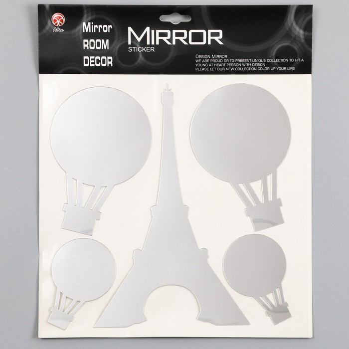 Наклейка интерьерная зеркальная "Эйфелева башня и воздушные шары" 38х31 см