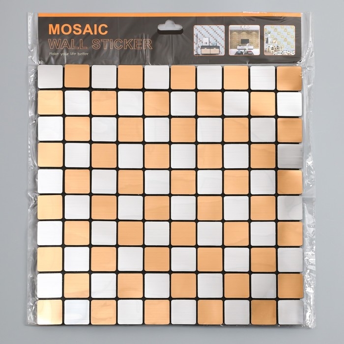 Наклейка интерьерная "Шахматный узор" серебристо-бронзовая 30х30 см
