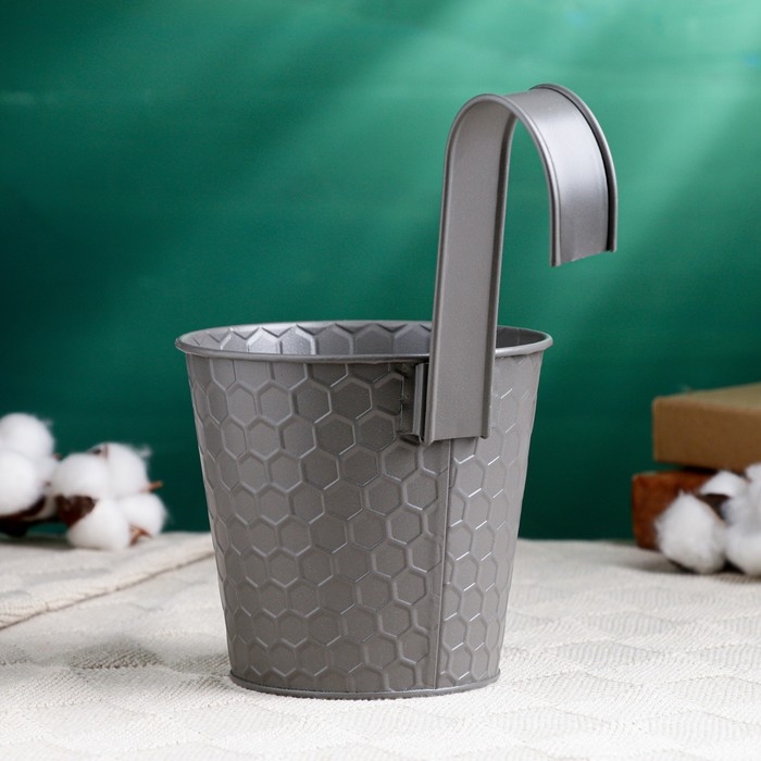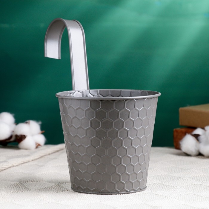 Кашпо навесное "Ведерко Линда" серое, 12х10х13см