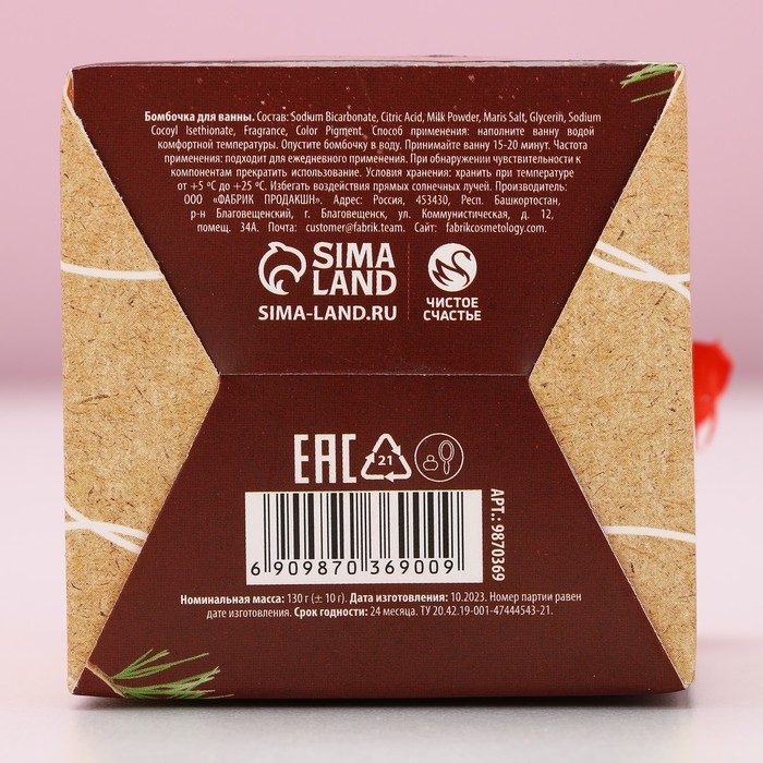 Бомбочка для ванны «Тепла», 130 г, аромат апельсина и сливок, Новый Год