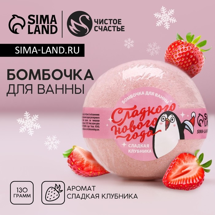 Бомбочка для ванны «Сладкого Нового Года!», 130 г, аромат сладкой клубники, ЧИСТОЕ СЧАСТЬЕ