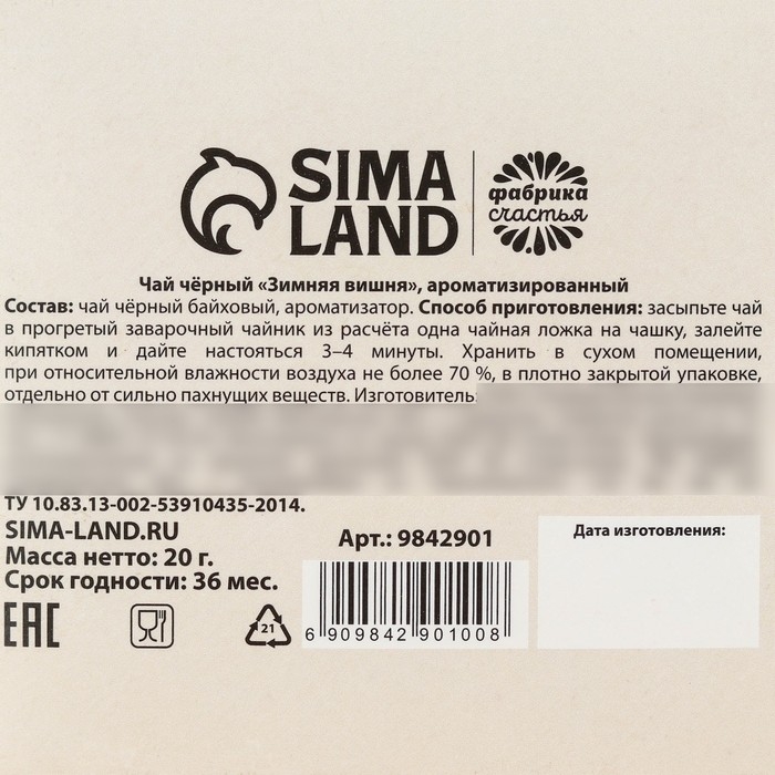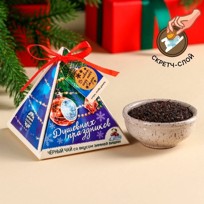 Новый год! Чай чёрный с предсказанием «Душевных праздников», вкус: зимняя вишня, 20 г.