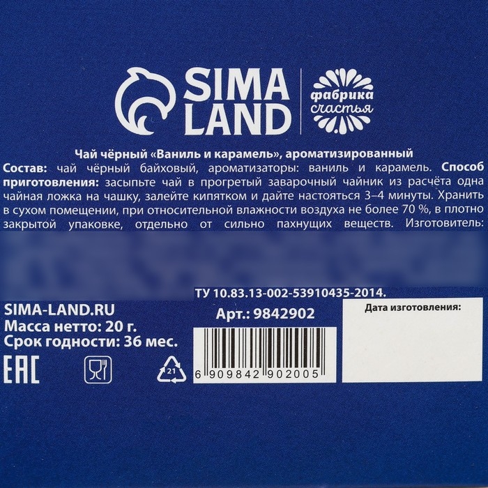 Состав: чай чёрный байховый, ароматизаторы: ваниль и карамель.