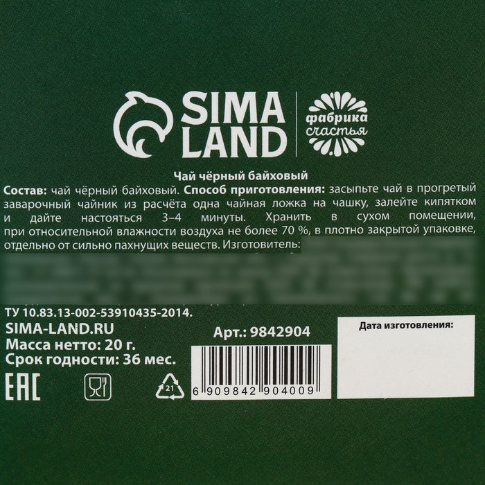 Состав: чай чёрный байховый.