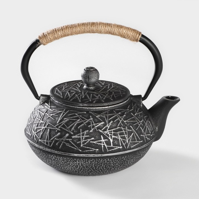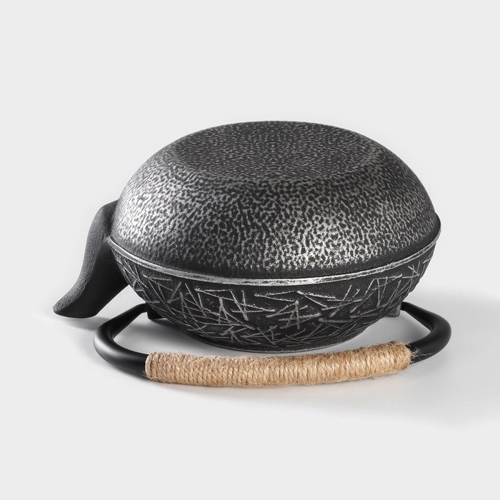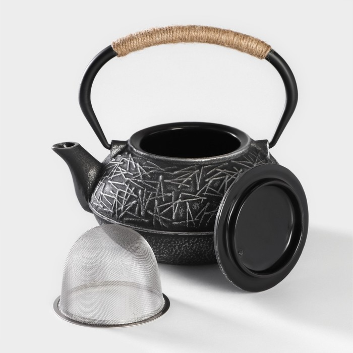 Чайник чугунный Доляна «Хрома», 800 мл, с ситом, эмалированное покрытие внутри, цвет серый