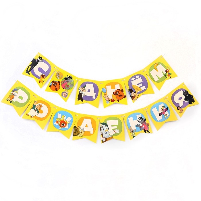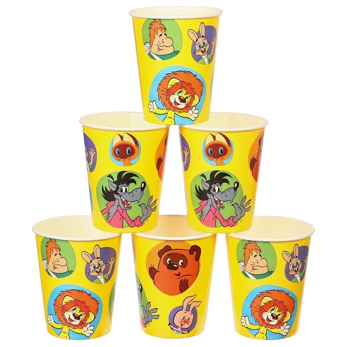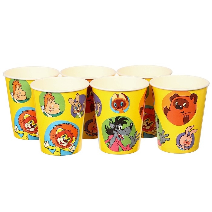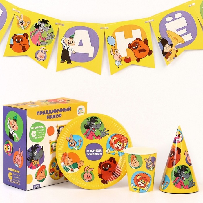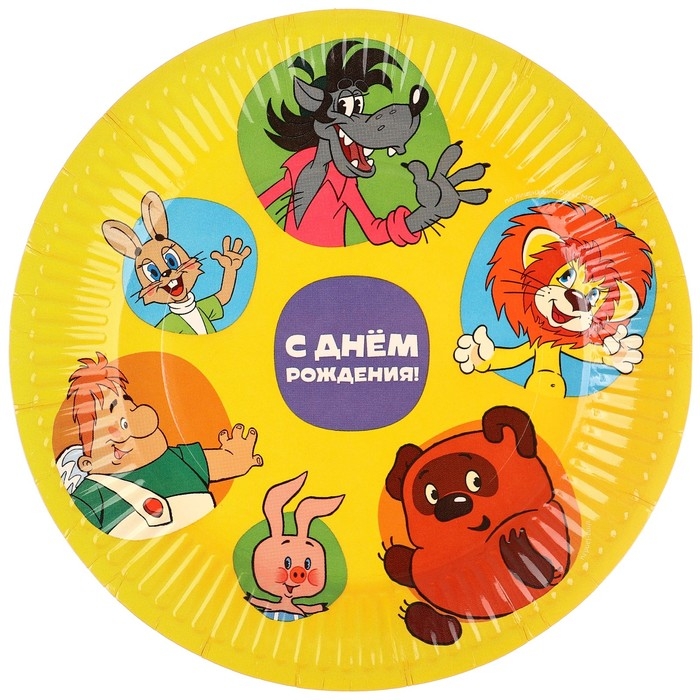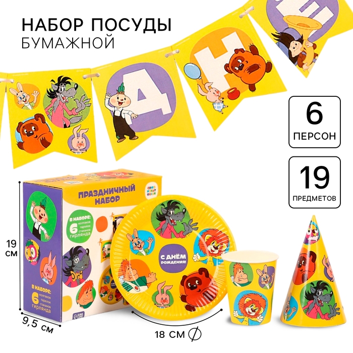 Набор одноразовой бумажной посуды, на 6 персон "С днем рождения!", Союзмультфильм