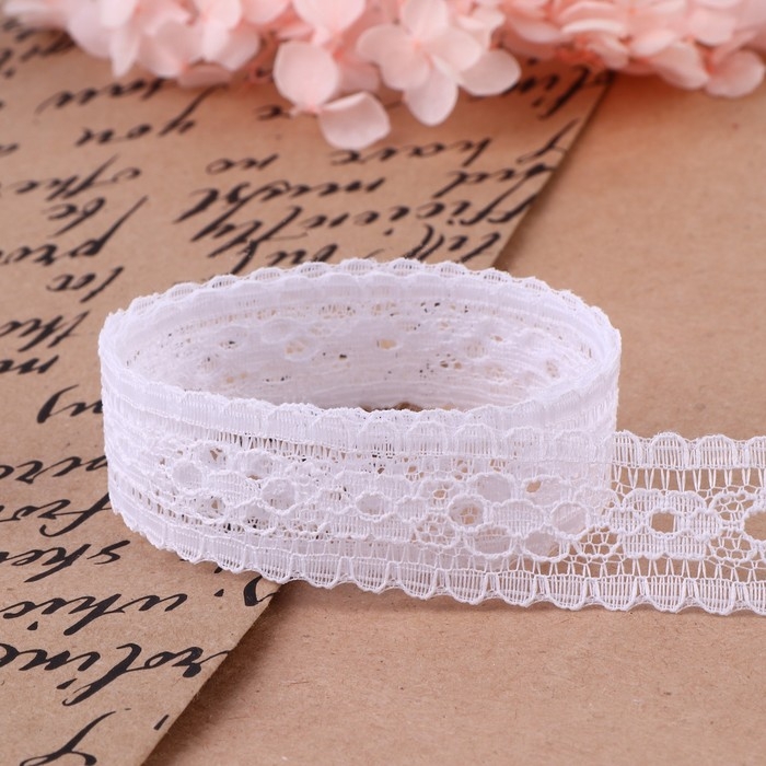 Кружево гипюровое, 35 мм × 9 ± 0,5 м, цвет белый