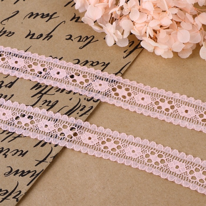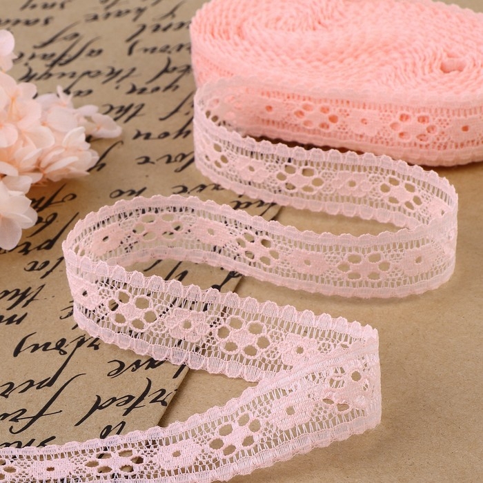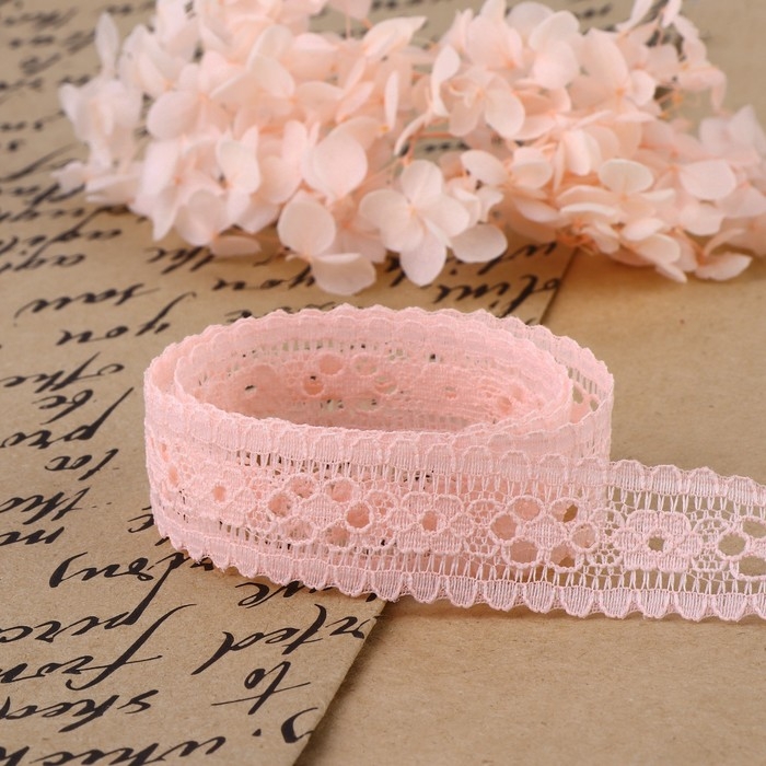 Кружево капроновое, 22 мм × 10 ± 1 м, цвет нежно-розовый