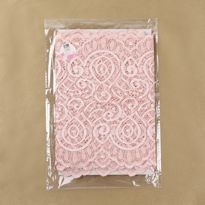 Кружевная эластичная ткань, 190 мм × 2,7 ± 0,5 м, цвет розово-бежевый