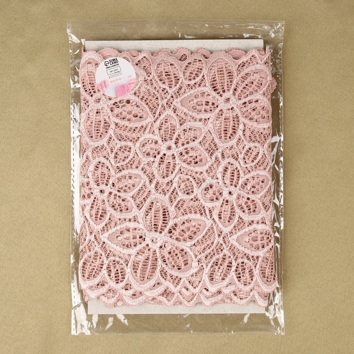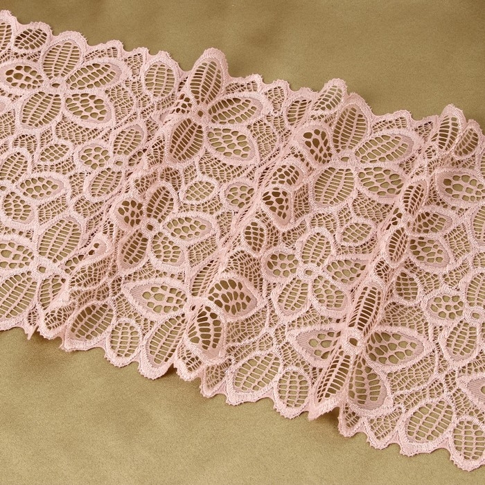 Кружевная эластичная ткань, 180 мм × 2,7 ± 0,5 м, цвет розово-бежевый