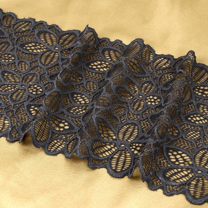 Кружевная эластичная ткань, 170 мм × 2,7 ± 0,5 м, цвет графитовый